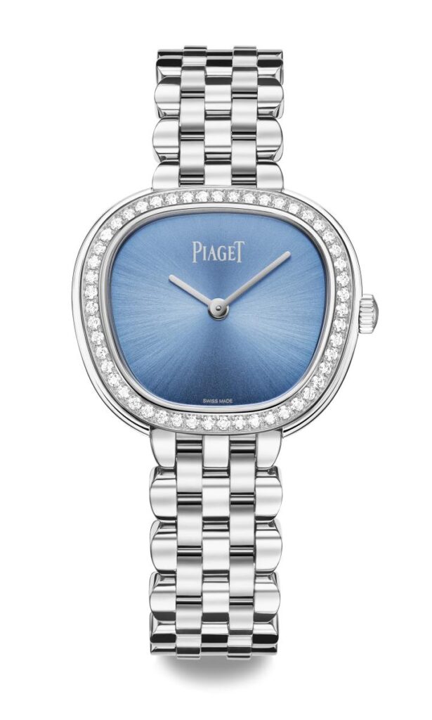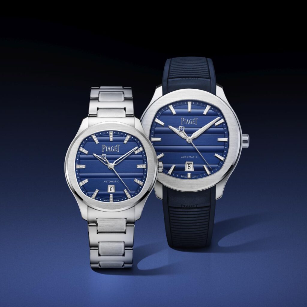 ウォッチズ&ワンダーズ 2026で、メゾンはそのシグネチャーであるゴドロン装飾の魅力を、ソーダライト文字盤を備えたホワイトゴールド製の新作Piaget Polo 79、そしてスタイリッシュなカップルウォッチに採用しました。愛され続ける「Piaget Polo Signature Date」の精神にも新たな解釈を加えています。この新しい文字盤はピアジェの象徴的なブルーを際立たせ、Piaget Polo Signatureコレクションの調和のとれたフォルムの組み合わせ(クッションカットのラウンド型ケース)を高めています。