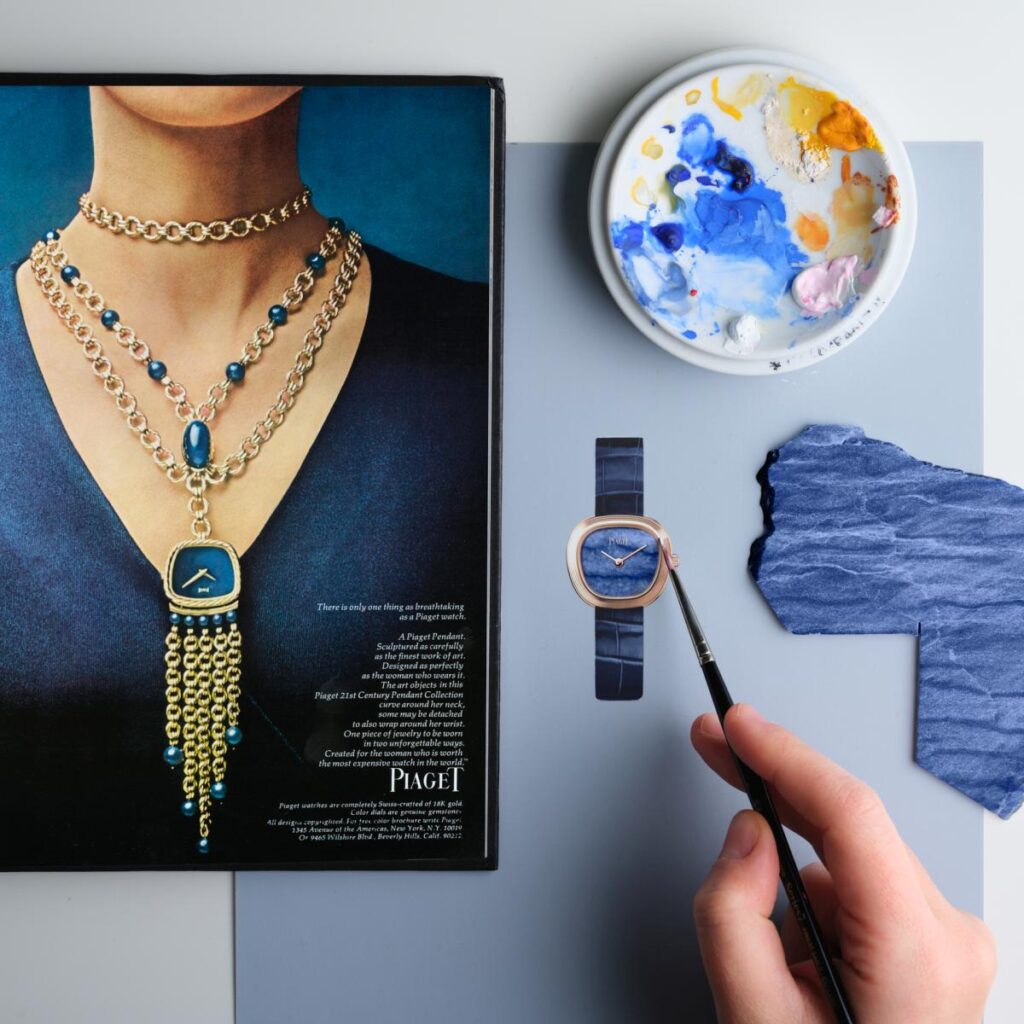 ピアジェは1年前 、ウォッチズ&ワンダーズ 2025で、メゾンの豊富なアーカイブを深く掘り下げ、フォルムと魅力を一新したジュエリーウォッチコレクションを発表しました。60年代後半を彷彿とさせるこのケースは、ゆったりとした女性らしいプロポーションの台形を描き、当時のニックネームである「Swinging Sixties」を連想させます。新しいデザインのウォッチはその起源と、1時間に60回、60秒を刻むという分かりやすい使命から、素朴に「Sixtie」と名付けられました。今日、Sixtieは新しい領域に足を踏み入れ、深く青い新バージョン発売に向けて準備を整えています。