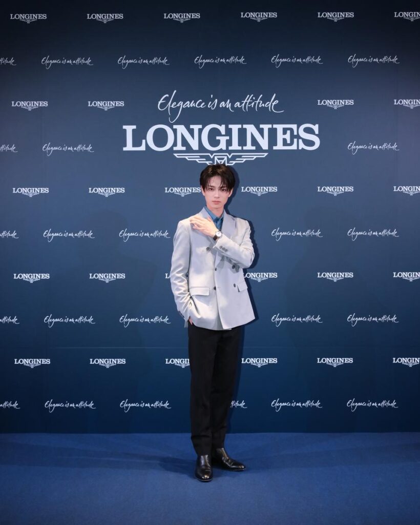 「ロンジン マスターコレクション」を着けさせていただいているのですが、シルバーの盤面に青の長針と短針ということで、シャツは青色でシルバーのジャケットにして、時計のベルトが黒っぽいシックなカラーなのでパンツを黒にする形で全身との統一感を出したのがポイントです。