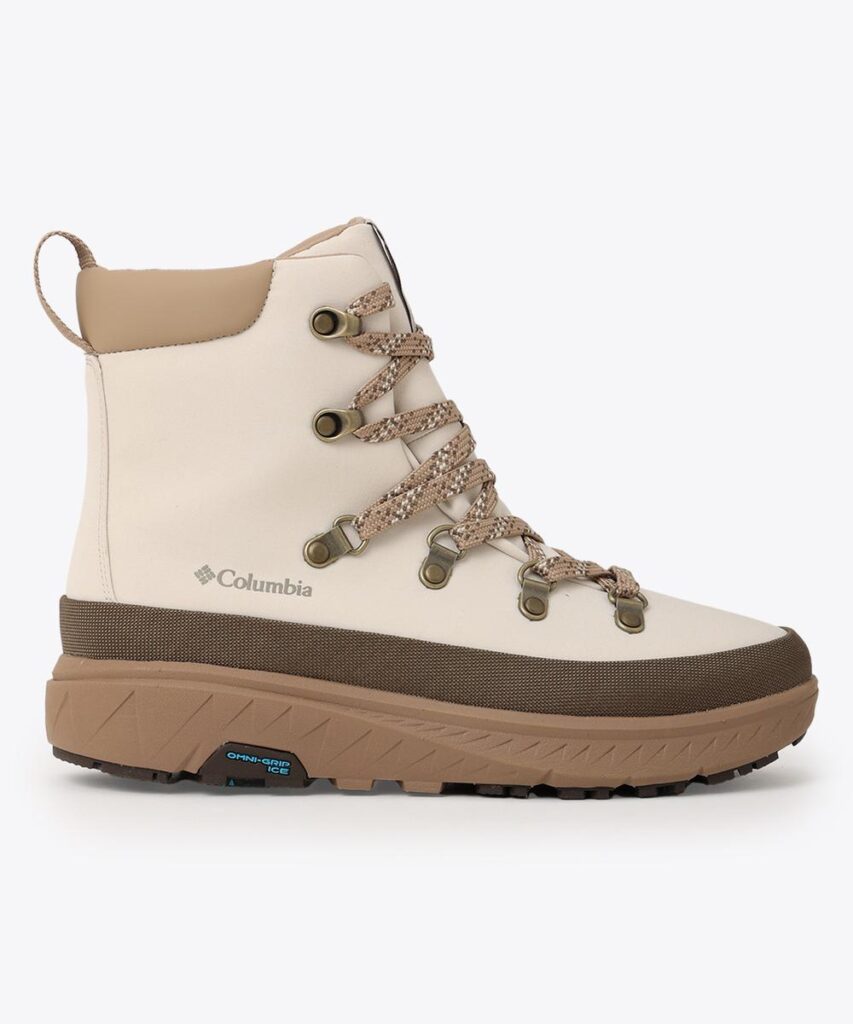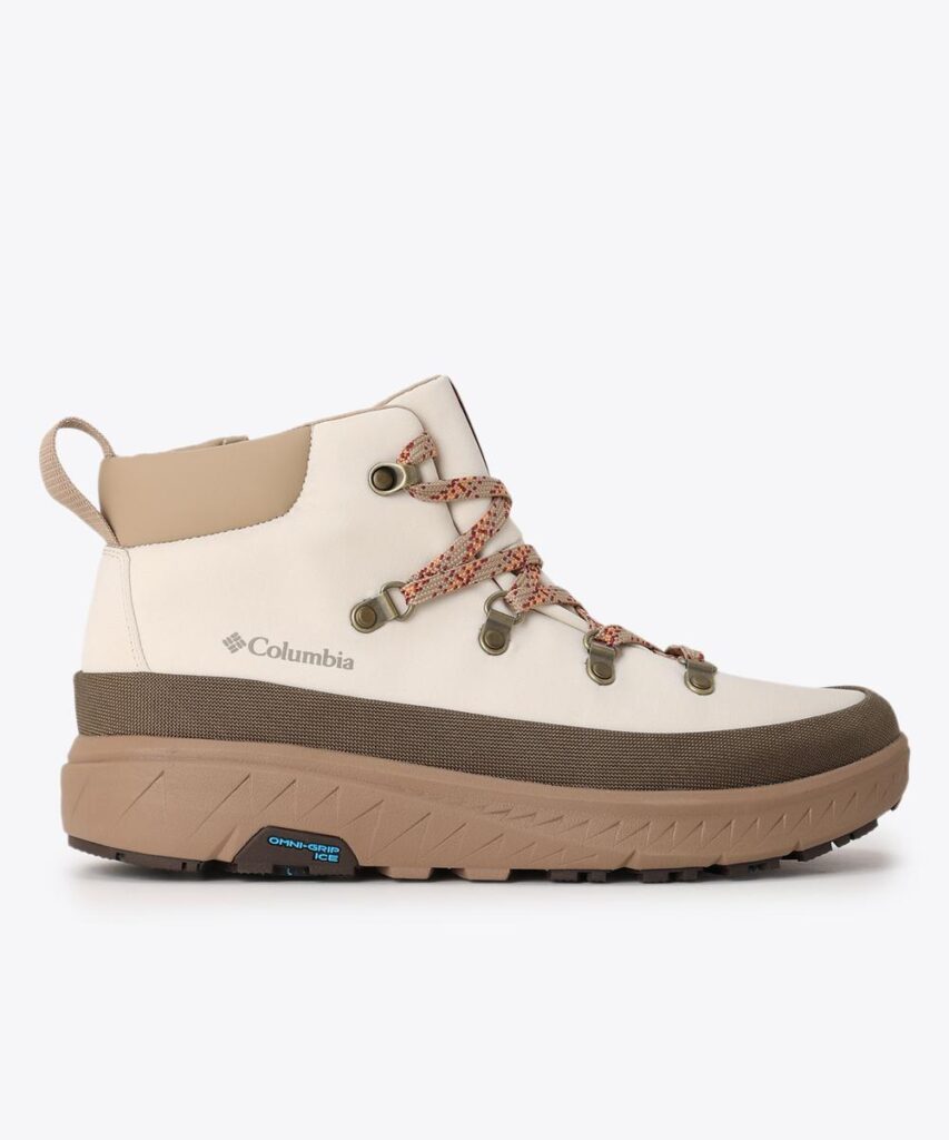 「YELLOWTAIL ICE MAGIC」は、クラシックなマウンテンブーツを思わせるフォルムに、摩耗性に優れたCORDURA(R)(コーデュラ)素材のマッドガードを採用することで、耐久性を高めたウインターブーツです。ライニングには、体の熱を反射して効率よく保温するコロンビア独自の熱反射保温テクノロジー「OMNI-HEAT INFINITY(オムニヒート インフィニティ)」を搭載。内側に配置されたゴールドのドットが熱を反射し、暖かさをキープしながら、ムレを逃して快適な履き心地を保ちます。さらに、アウトソールには独自の防滑機能「OMNI-GRIP ICE(オムニグリップ アイス)」を採用し、氷雪路面で優れたグリップ力を発揮。都市部の凍結した道でも安定した歩行をサポートします。アッパー全体はウォータープルーフ仕様で、雨や融雪の水侵入を防ぎつつ、通気性にも配慮しています。