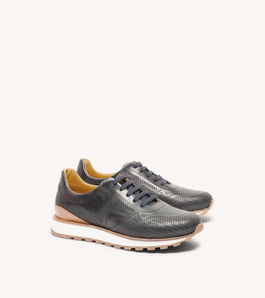 卓越した技術は、アッパーにレーザーカットを施した「モエナ スニーカー」にも応用され、カジュアル・ラグジュアリーの領域へとその可能性を広げています。これはテストーニが絶え間なく挑戦を続けていることの証です。最先端のレーザーテクノロジーを駆使したこのアイコニックなスニーカーは、足を優しく包み込む柔らかさと、耐久性を両立させたアッパーが特長です。