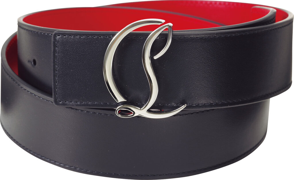 裏側に赤色を効かせたルブタンらしいレザーベルト。幅38mm。8万0300円