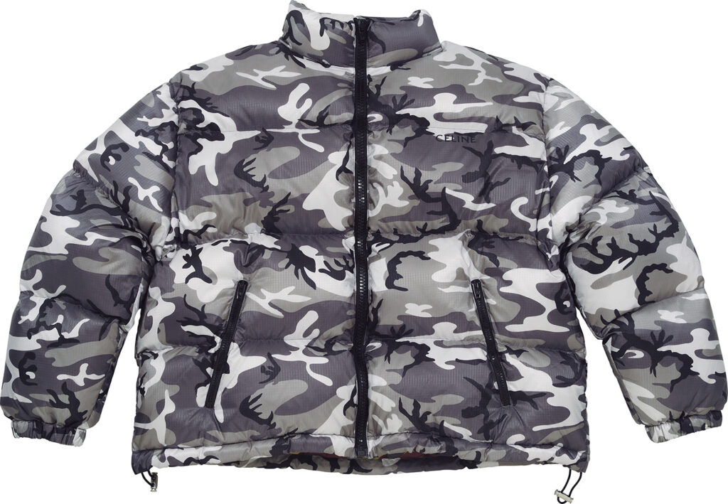 モノトーンのカモフラ柄が都会的なダウン。着用サイズ:50。35万2000円