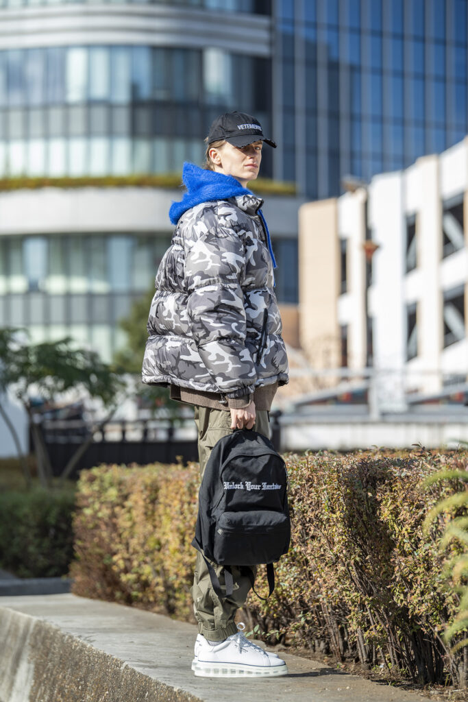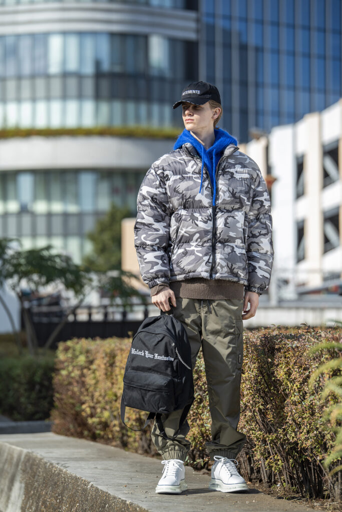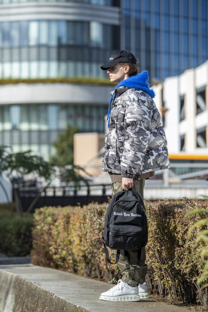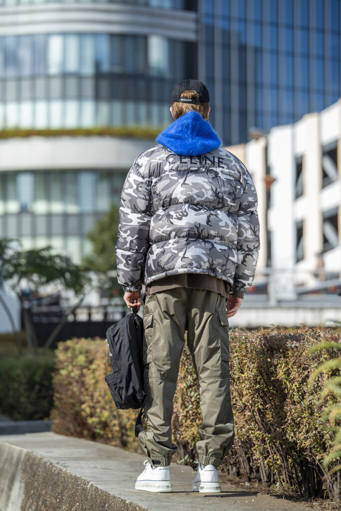 ダウンジャケットとニットパーカ、さらにスキーウェアから発想を得たテクニカルカーゴパンツを組み合わせた真冬仕様のコーデなら、長時間の外出でも快適さをきちんとキープ。バックパックで両手を空ければ、移動や待ち時間もストレスフリー。足元もソールが厚めのスニーカーでしっかりと寒さ対策。真冬のテーマパークや屋外イベントなど、暖かさと動きやすさの両立が求められるシーンで実に頼りになります。防寒重視でも、オシャレを妥協しない装いを。