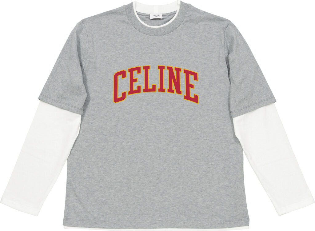 1枚で映える、重ね着風カレッジロゴのロンT。着用サイズ:L。12万1000円