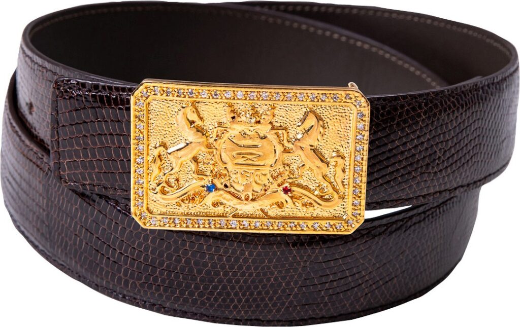 リザードベルト サントロペ ダイヤ(茶)。バックルサイズ/タテ37mm×ヨコ58mm。30mm幅レザー。