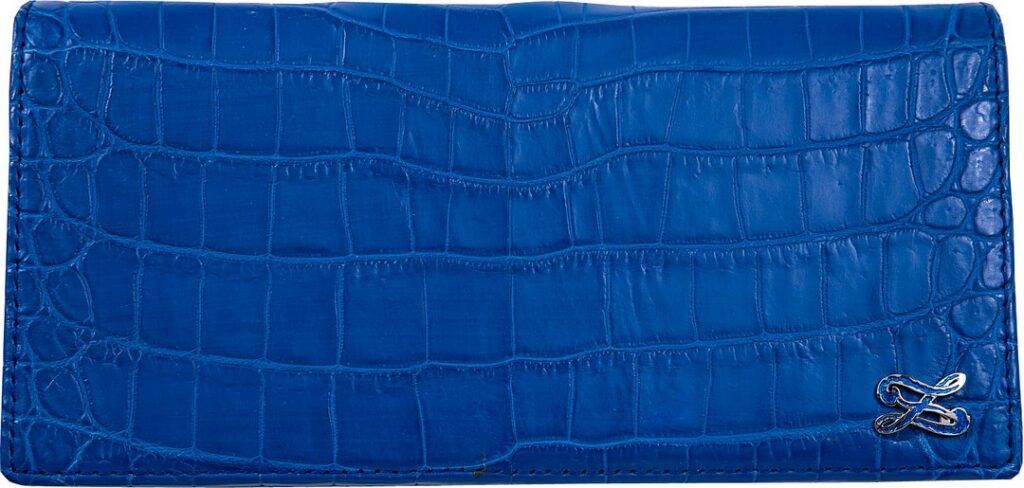 「ナイルクロコダイル コンコルド ウォレット」は、地中海を想起させる鮮やかなブルー。こちらは小銭入れを省いた作りで、すっきりとしたシンプルなデザイン。財布とは別にパスケース兼用のコインケースを持ち歩いている人にはうってつけと言えるでしょう。