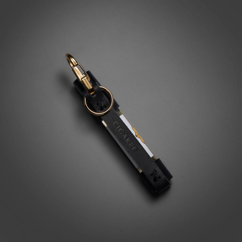 表にはブランドのアイデンティティである金の王冠が箔押しされ、裏面にはCIGARROのブランドロゴが型押しされた仕様です。