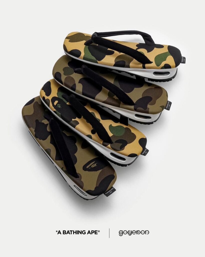 A BATHING APE(R)(ア ベイシング エイプ(R)︎ 以下、BAPE(R)︎)は、日本のプロダクトデザインチーム「goyemon(ごゑもん)」のフットウェア「unda(雲駄)」のコラボレーションモデル第2弾を発売します。