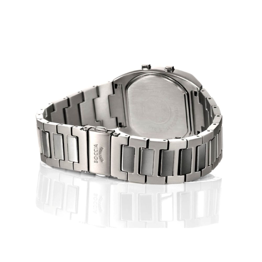 この時計は、フルメタルのデジタルウォッチを同じ金属でも圧倒的に軽くアレルギーにも強い「ピュアチタニウム」で作る、というチタン素材のパイオニアBOCCIAならではの発想から誕生したプロダクトです。