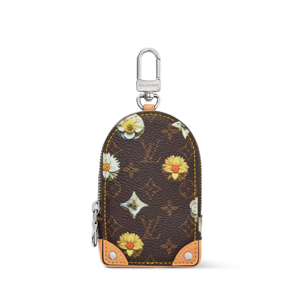 バッグやベルトループに取付けるのに最適なサイズの「モノグラム・フラワー ポーチ」。ファスナー付きのケースには、鍵やクレジットカード、ワイヤレスイヤホンなどを収納できます。スプリング・コレクションのテーマをフローラルに再解釈したパターンが機能的なデザインにモダンな魅力を添え、シルバーカラーのビス(鋲)をあしらったレザーのコーナー部分は、メゾンのトランク製造の伝統を想起させます。