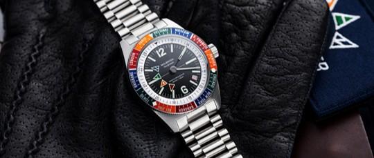 ブランドを代表するモデルが、1960年代に登場した「Skindiver(スキンダイバー)」です。ダイバーズウォッチとしての機能性を備えながら、パイロットウォッチの要素を取り入れた高い視認性のダイヤルデザインが特徴。シンプルでありながら計算されたインデックス配置やコントラストの効いた配色は、水中・陸上を問わず瞬時に時刻を読み取ることを可能にしています。また、一部モデルにはワールドタイム機能を備えるなど、当時としては先進的な機構を取り入れていた点も特徴のひとつです。 用途に応じた実用性を重視する姿勢は、単なるダイバーズウォッチにとどまらない多機能ツールとしての価値を生み出しています。現行モデルでは当時のデザインを忠実に再現しつつ、サファイアクリスタルや現代的な防水性能などを備えることで、日常使いに適したスペックへとアップデートされています。