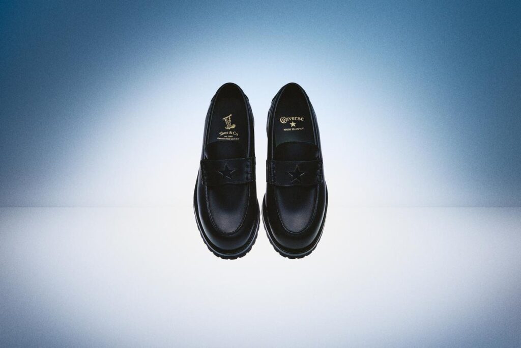 コンバースは、日本を代表する製靴メーカー〈REGAL〉が手掛ける〈REGAL Shoe & Co.〉とのコラボレーションによるプレミアムモデル ONE STAR J LOAFER PRM を、2025年10月3日(金)より順次発売します。本モデルは、1990年代に登場した、サドル部分の“一つ星”が印象的な〈ONE STAR LOAFER〉をベースに、リーガルローファーを象徴する「拝みモカ」と「ビーフロール」を組み合わせて再構築。アッパーからソールに至るまでブラックでまとめ上げ、クラシックかつ重厚な佇まいに仕上げました。製法には、高級紳士靴に多く採用されるグッドイヤー・ウェルト製法を採用。履き込むほどにインソールが足に馴染み、快適なフィット感が増していくのも特徴です。アッパーには艶のある国産ステアオイルレザーを用い、インソールにはクッション性に優れるエラストマーと牛革の切り替え仕様を採用。 アウトソールには、軽量性・耐久性・屈曲性に優れたVibram社製ニューフレックスソールを搭載し、長時間の着用でも疲れにくい快適性を実現しました。さらに、中物にはオーソライトを、ライニングには上質な牛革を使用し、細部に至るまで贅沢な仕立てを追求しています。両ブランドのロゴを並べたオリジナルカートンも付属し、コラボレーションならではの特別感を演出。伝統と革新が交差する一足となっています。