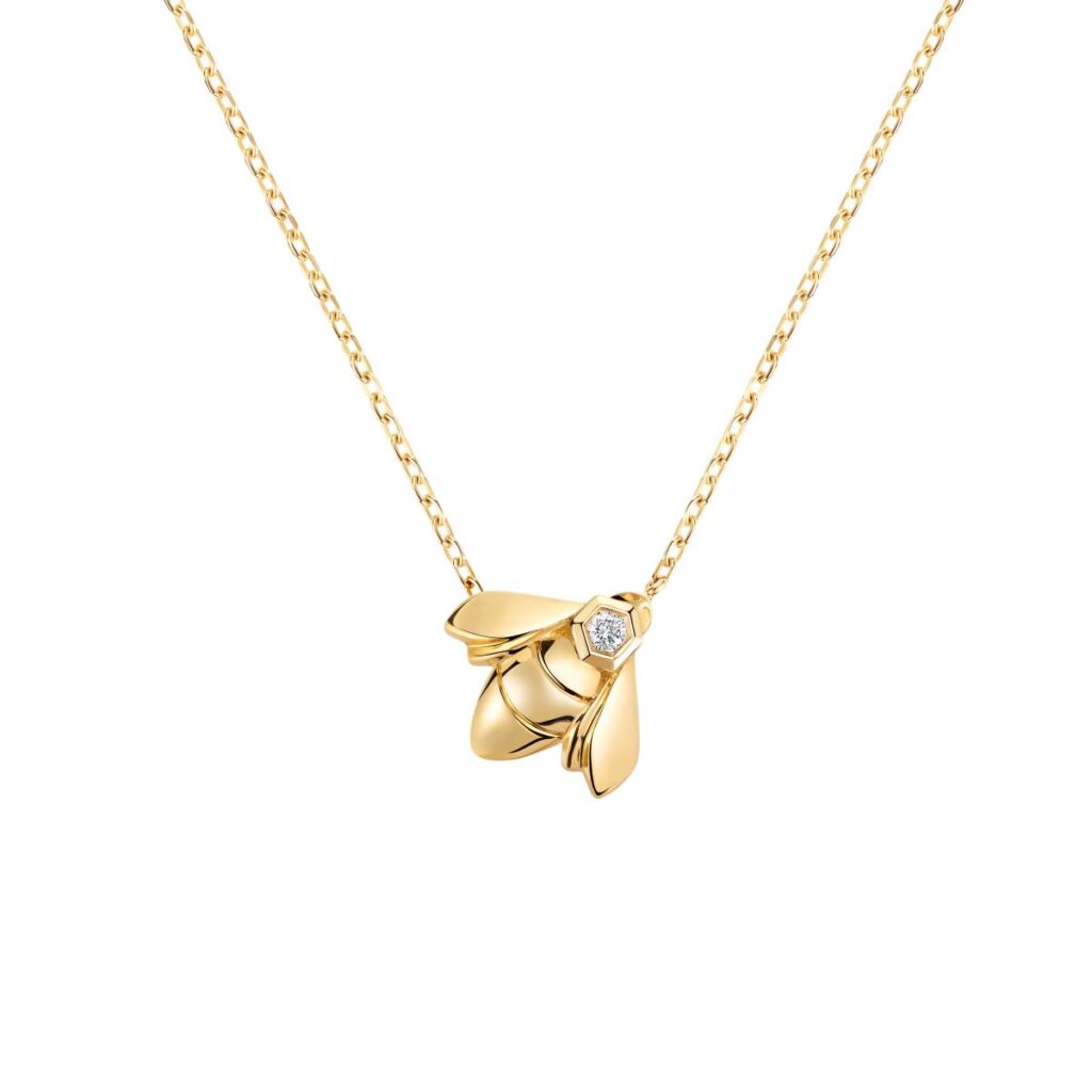 ヨーロッパでは古より「幸せを運ぶモチーフ」として愛されるミツバチや、その巣であるハニカムを象ったデザインは、身に着ける人に幸福をもたらす象徴。知的でありながら愛らしいモチーフが、胸元で繊細に耀きます。