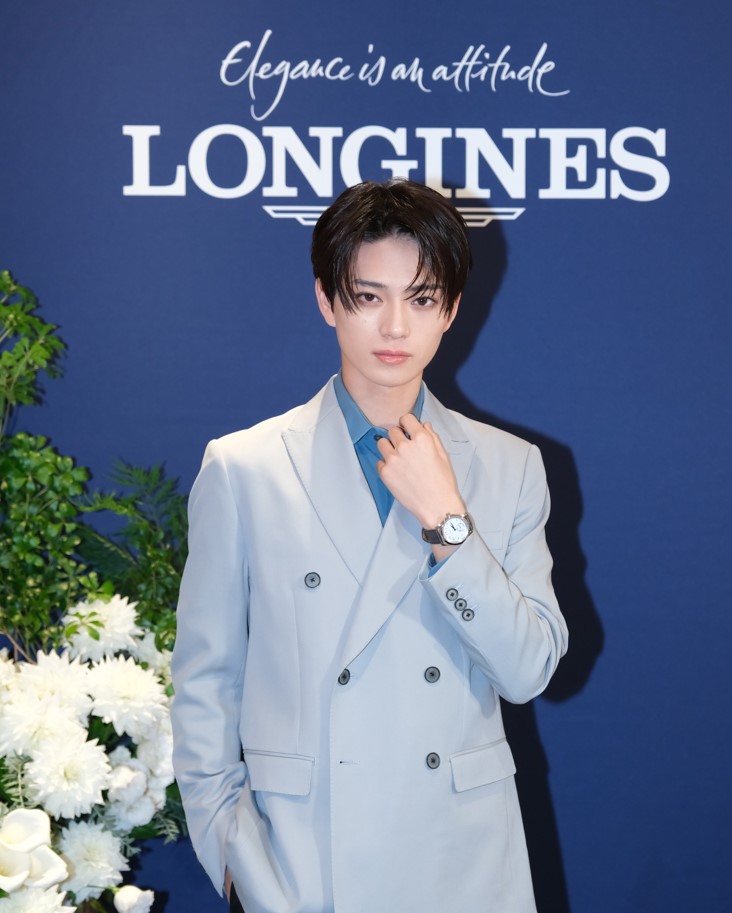 「ロンジン マスターコレクション」を着けさせていただいているのですが、シルバーの盤面に青の長針と短針ということで、シャツは青色でシルバーのジャケットにして、時計のベルトが黒っぽいシックなカラーなのでパンツを黒にする形で全身との統一感を出したのがポイントです。