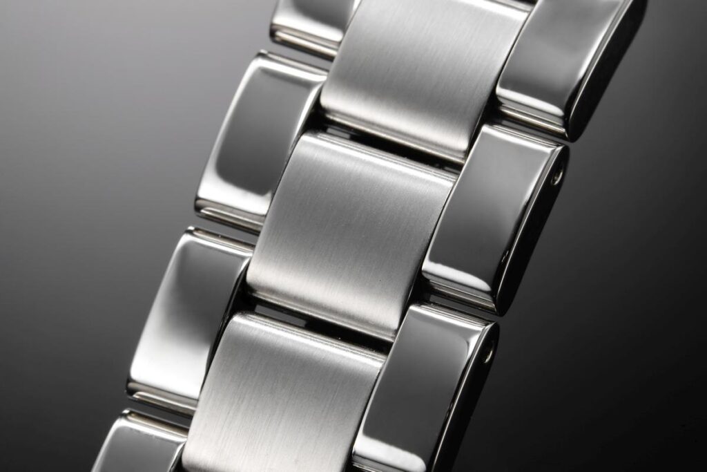2レジスター風にアレンジされた文字盤で、3時位置にブランドロゴ&オーナメント、4時位置にはデイトウィンドウを設置。