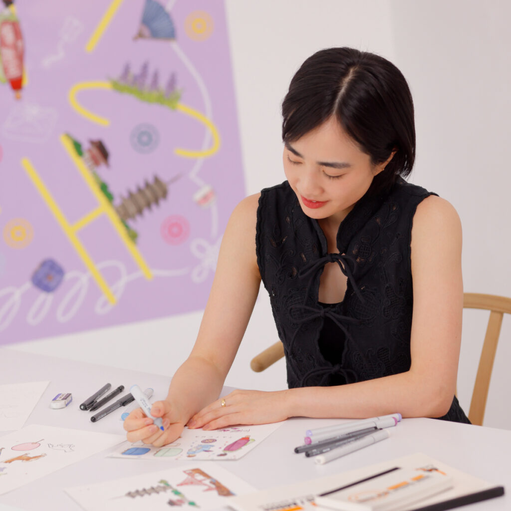 ロンドンを拠点に活動。国内外問わず、ブランドとのコラボレーション、広告、パッケージデザインなどを幅広く手がけている。旅やファッションなど、自身の経験やライフスタイルからインスピレーションを受けて描く作品は、あたたかいタッチと色合いで色彩豊かに幸福感を表現している。