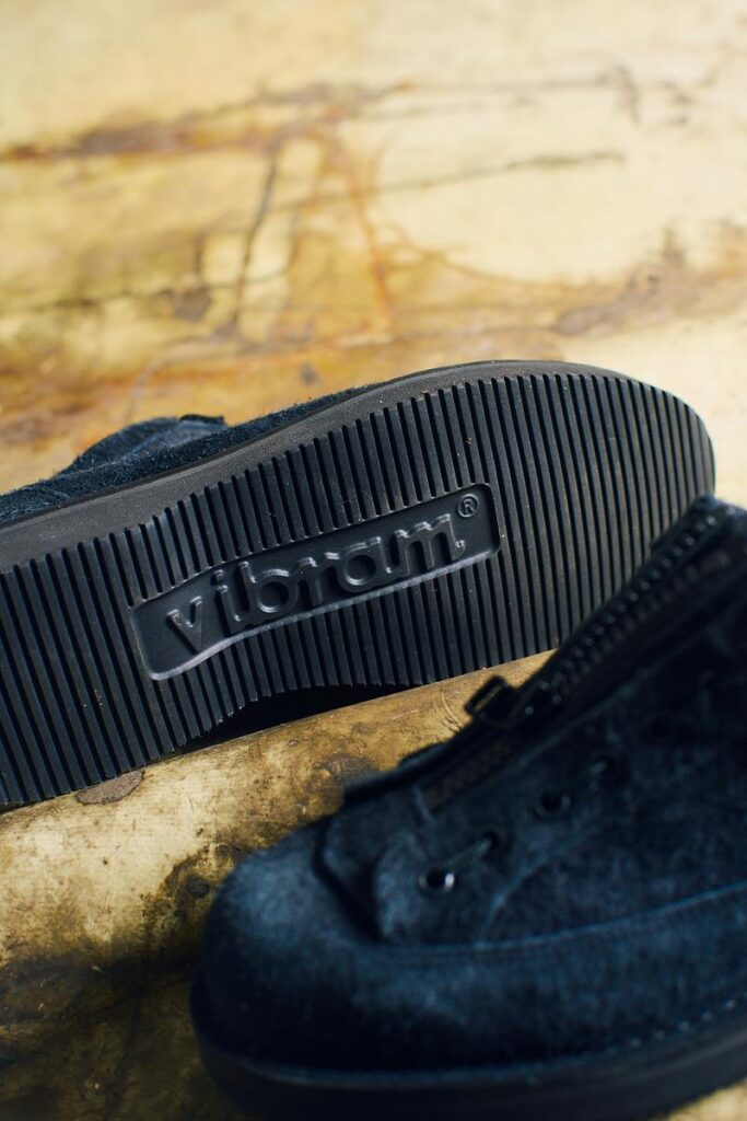 ソール構成はEVAベースのVIBRAM EVA FLEXを採用し、内部に一枚ミッドソールを追加している。