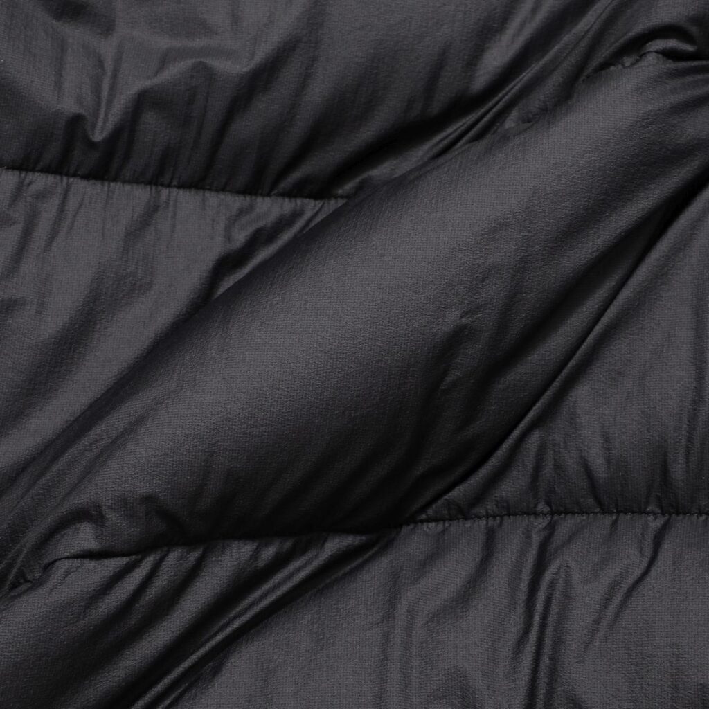 圧倒的な軽さを追求した「フロータブルシリーズ」から発売した本製品は、表地に軽量素材を採用し、通常のダウンウェアに用いられるダウンパックを排した構造で縫製することで、素材・構造の両面から軽量化を実現しました。ダウンパックは省いているものの、縫製にはダウンの吹き出しを防ぐ特殊ステッチを施しているため、ダウン吹き出しの懸念を軽減しています。さらにファスナーなどの副資材の見直しによって細部まで軽量化を追求することで、ダウンならではの保温性と大幅な軽量化の両立を実現しました。