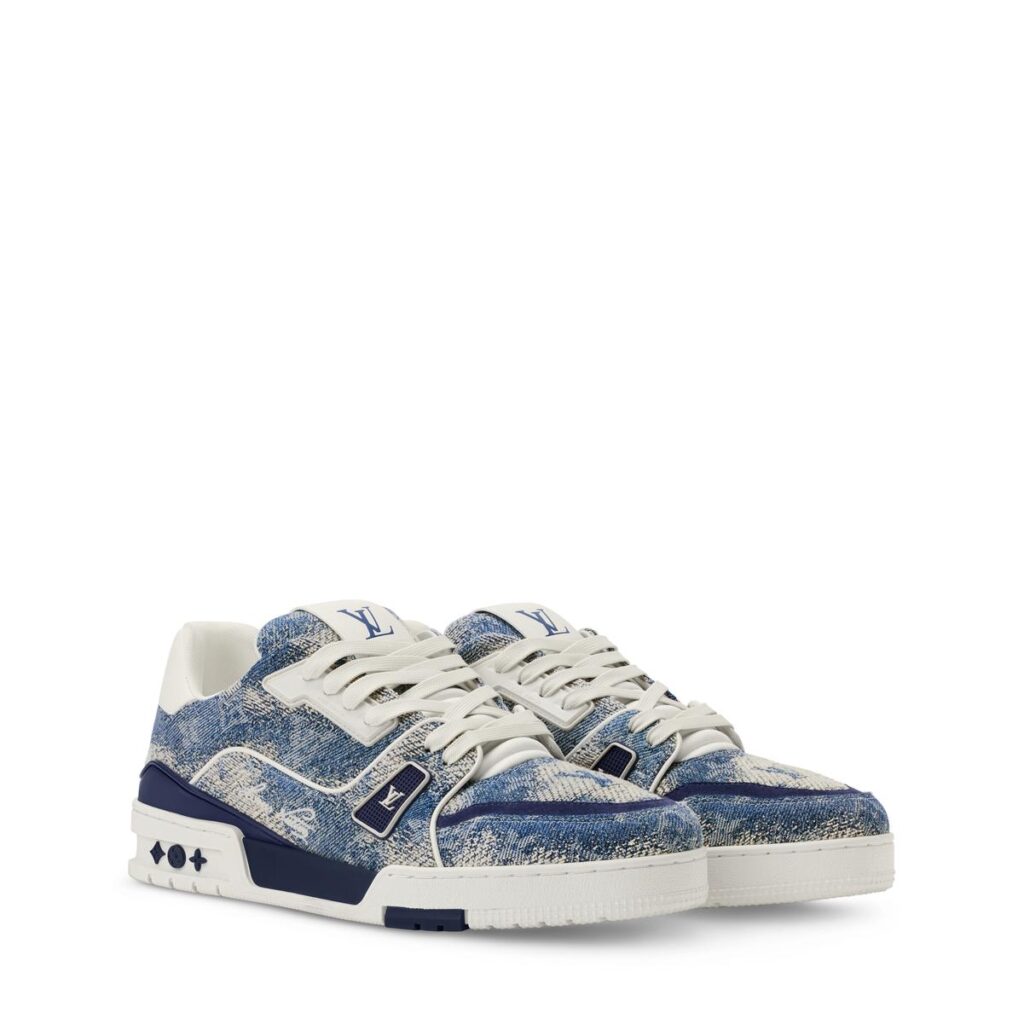 今シーズンならではの特徴あるクラウドエフェクトを施したモノグラム・デニムの「LV トレイナー スニーカー」。コントラストを描くレザートリミングが、ヴィンテージのバスケットボールシューズを讃えたこのモデルの精巧な構造を際立たせます。サイドには手書き風の「Louis Vuitton」シグネチャー、背面にはメゾンが創業した年の1854年を意味する「#54」があしらわれています。