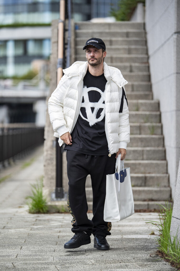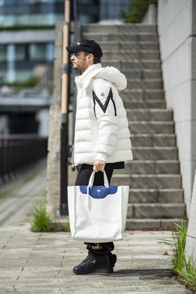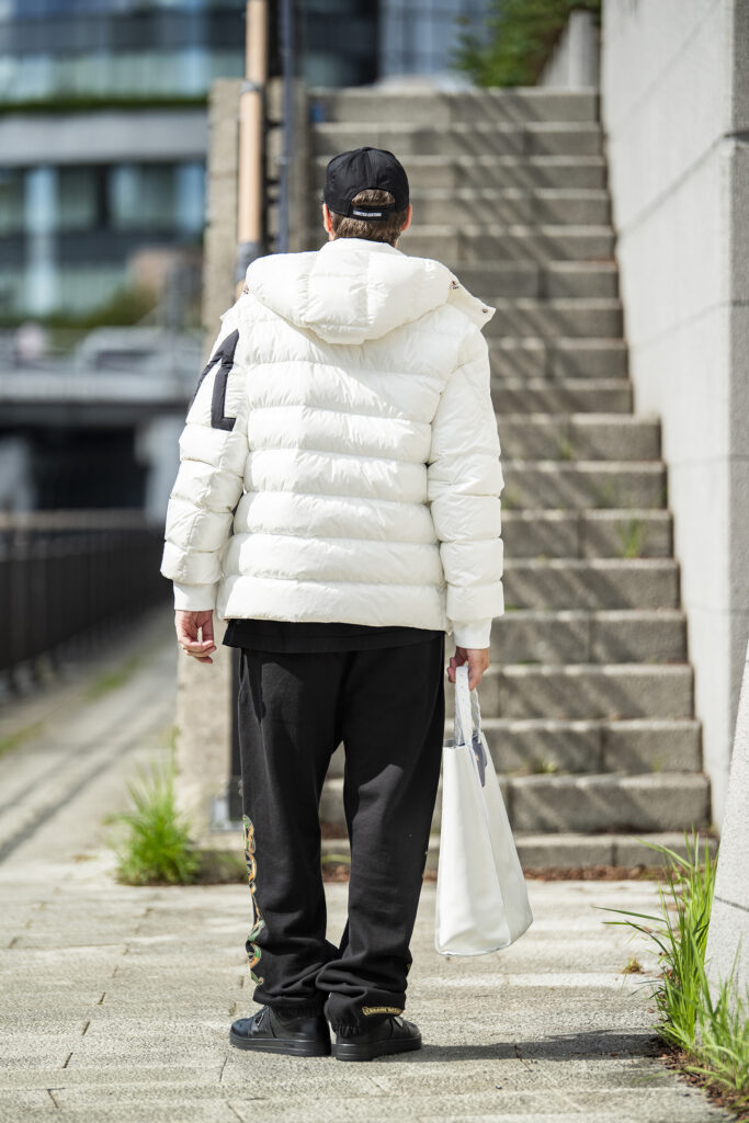 帰省や旅行だけでなく、日常的にも外出が増える年末年始にぴったりなのがダウン×スウェットパンツのコンビです。モンクレールのダウンなら、中がロンT一枚でも暖かくリッチな印象も確保。スウェットパンツの脱力感を白が中和し、全体を清潔にまとめてくれます。足元はプラダのスニーカーで、さりげなくきちんと感をプラスして。シンプルなのに手抜きには見えない。そんなスタイルで登場すれば、久々に会う仲間にも“洒落てる”と一目置かれるはずことでしょう。