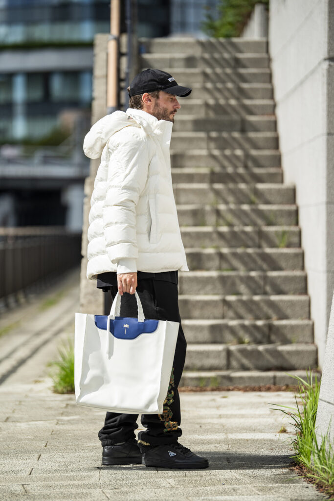 重厚感あるコーデに“抜け”を足すロゴ刺繍と縁のミニロゴ。5万8000円