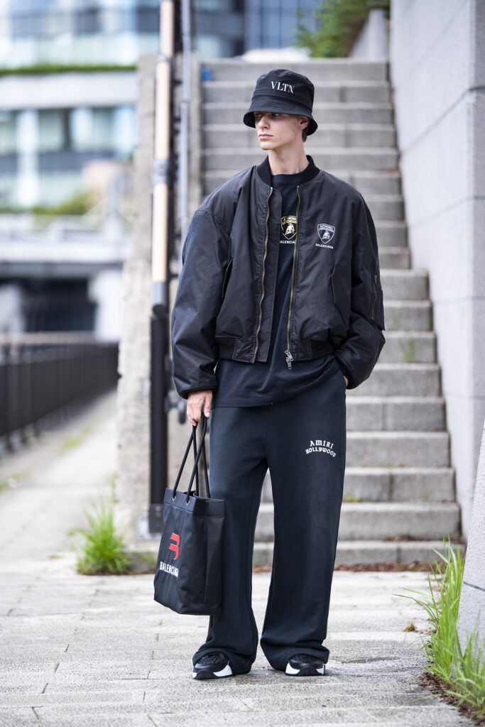 休日くらいは身体を締めつけない服が着たい。けれど、部屋着では気分が上がらない……。そんな時こそ選びたいのがバレンシアガ。ただのオーバーサイズではない計算されたシルエットが光ります。ランボルギーニとのコラボアイテムは、大人の遊び心をくすぐる逸品。クルマ好きなら一目でわかるそのロゴは、自己主張し過ぎずに“粋”を感じさせます。裾が広がるスウェットパンツで力の抜けた雰囲気に。リラックスと洒落感、その両方を叶えてくれる休日服なのです。