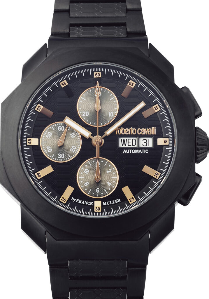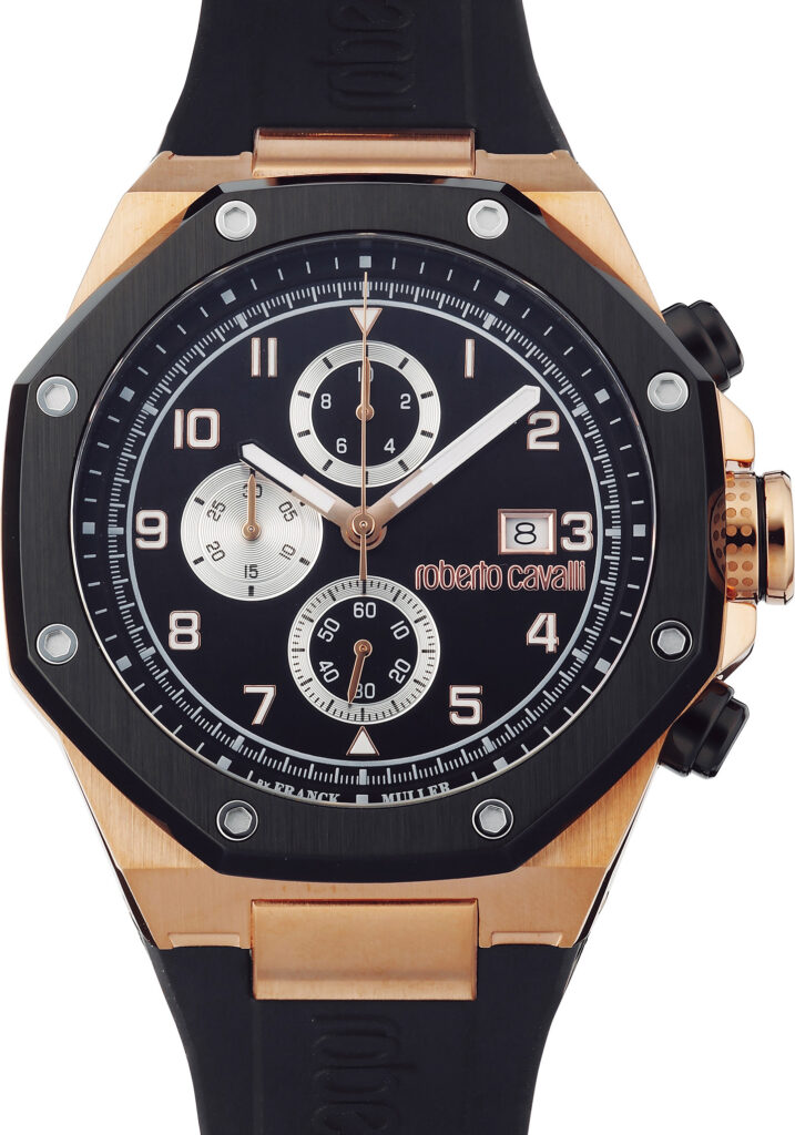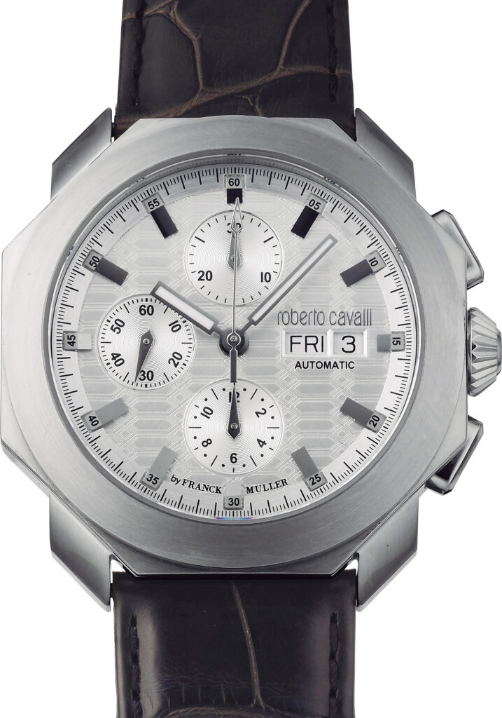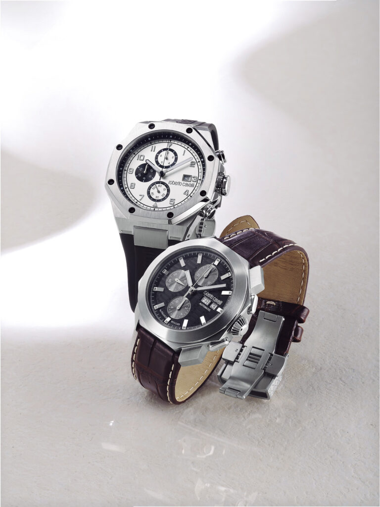 経過時間の計測など、多岐に渡る複雑機能を備えたクロノグラフ。近年ではその実用性以外、例えばデザインなどの好みからクロノグラフを選ぶ人も増えており、購入動機はどうあれ時計好きにとってはロマン溢れる腕時計として高い人気を誇っている。ここでは、クロノグラフの中でも最近人気が高まってきたといわれる縦3つ目の腕時計を、ロベルト カヴァリ バイ フランク ミュラーの中から選んでみた。ピックアップしたのは『259』と『039』の2シリーズ。