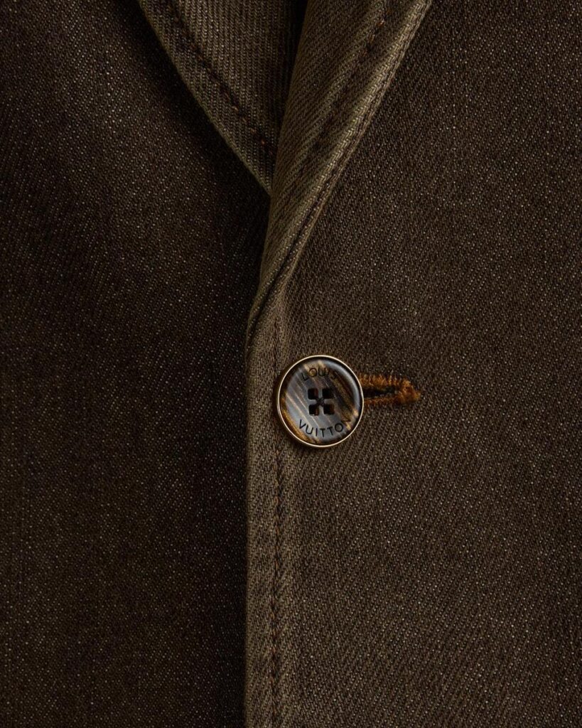 ジェレミー・ストロングが着用したカスタムメイドウエアには、2026春夏メンズ・コレクションのショーのために独自開発された、コーヒービーンカラーの認証デニムを使用しています。ヴィンテージ感を出すために特別なウォッシュ加工が施され、コーヒービーンの陰影を表現するためのハンドペイント工程を取り入れています。このウエアのウォッシュ加工には約24時間、仕立て工程には約25時間もの時間を要しました。