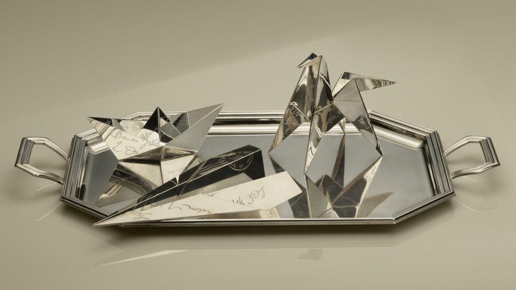 アーカイブに着想を得たアイテムも登場します。ボードンハウスの住所を“手書きの封書”を思わせるスタイルで刻印した、スターリングシルバー製の折り紙の馬は、この季節を象徴する静かな気品を湛えた一品です。