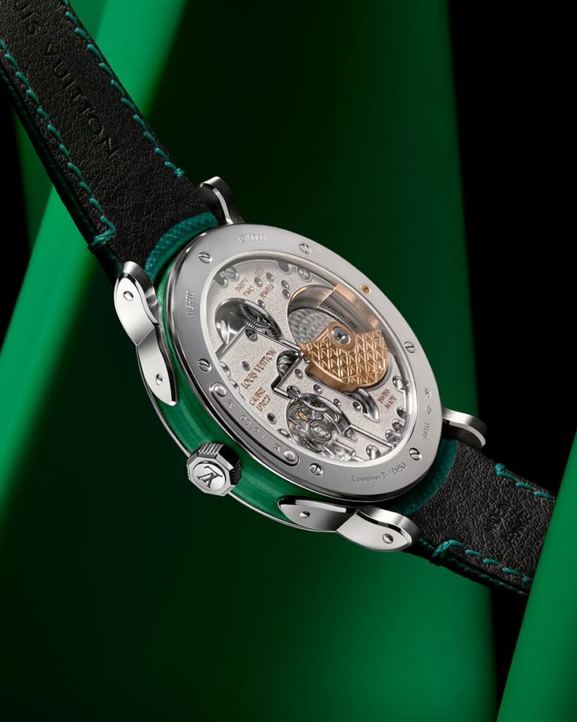 「エスカル」の新作は、鮮やかな色彩と美しい魅力で珍重されている装飾用鉱物であるターコイズおよびマラカイトのダイアルを使用し、どちらのモデルも30本限定で製作。まさに卓越したクラフツマンシップの結晶である40mmのケースには、ダイアルに使用されているのと同じ鉱物から作られたシームレスな一体型のケースリングが組み込まれています。ラグ、ベゼル、ケースバック、リューズは、ターコイズとマラカイトの要素が備える自然な輝きを際立たせるプラチナ製です。