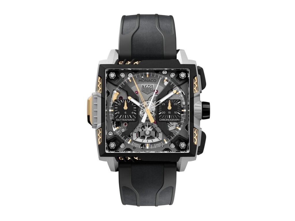 この特別なケースには、タグ・ホイヤーのコレクションの中でも最も複雑なクロノグラフムーブメントのキャリバーTH81-00が搭載されています。これにより、「タグ・ホイヤー モナコ スプリットセコンド クロノグラフ エア 1」はラトラパンテ クロノグラフ機能を備えます。