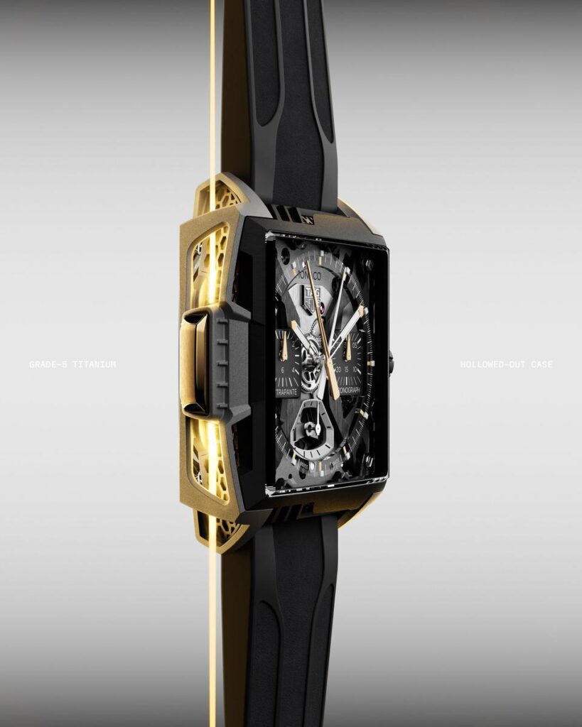 この新作ウォッチの引き締まった彫刻のようなフォルムは、それを可能にした画期的なテクノロジーを象徴しています。超軽量なグレード5チタン製ケースは、選択的レーザー溶融(SLM)と呼ばれる最先端の製造技術を用いて製作されました。SLM積層造形プロセスは、航空宇宙、医療、自動車などの分野で複雑な幾何学的形状の精密部品を製造する際に広く採用されています。これまで数々の輝かしいイノベーションを生み出してきたタグ・ホイヤーの社内部門「タグ・ホイヤー ラボ」は、SLM技術をウォッチメイキングに応用。これにより、タグ・ホイヤーのデザイナーとエンジニアは、現代のハイパーカーの空力ラインを彷彿とさせる印象的な3Dフォルムを構想し、現実のものとすることに成功したのです。