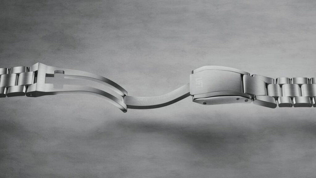 プロパイロットシリーズ共通の特徴でもある、飛行機のシートベルトのバックルから着想を得たORISのリフトクラスプも面取りを施してより洗練された印象に。