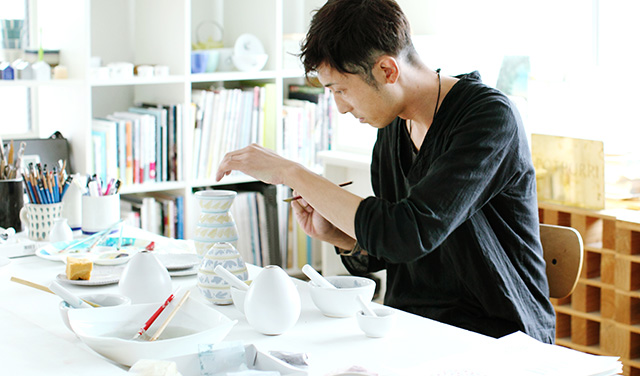 「POTPURRI」は、美濃焼きで知られる岐阜の窯元で約9年間働いた岡見宏之が2012年にスタートしたブランド。岡見自身が学び見てきた昔から伝わる職人の技術と、自分たちのデザインを混ぜ合わせたオリジナルの食器を作りたいという思いから、スウェーデン語で“混ぜ合わせ”という意味の「POTPURRI」と名付けられました。その名の通り、日本古来の陶芸技術に裏打ちされた高い品質と、北欧を連想させる温かでモダンなデザインが合わさった食器は使い勝手もよい上、食卓を彩るいいアクセントにもなってくれます。 磁器に限らず赤土や黒土といった良質な国産の土を使いながら、現在は東京で手作業の工程が多い商品や、自身で手掛ける1点物の作品を、そして岐阜県では量産の商品を製造しています。
