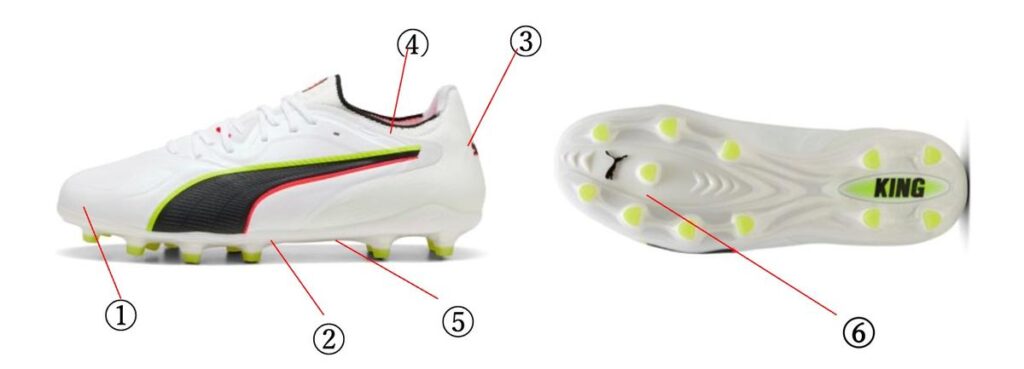 T字型のFast Trax studは、学術的な研究から、多くのテストを繰り返し、開発されました。加速、ターン、クイックなフェイントに対して、最適な蹴りだしをもたらします。PebaxナイロンとPUで形成される軽量アウトソールで、丸形をベースにしたスタッドは様々動きにグリップ力を発揮し機動性を高めます。中足部に配置されたシャンクが中足部の捻じれを抑制し力の分散を抑える効果をもたらします。