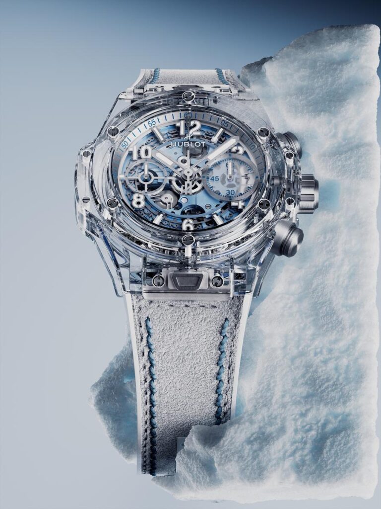 ウブロは、アイコニックな「ビッグ・バン ウニコ」より、ウィンターエディション「ビッグ・バン ウニコ ウィンター サファイア」と「ビッグ・バン ウニコ ウィンター チタニウム セラミック」を発表しました。サファイアクリスタルまたはチタニウムとセラミックで作られ、氷のような白と氷河の青を基調とした新しいウィンターエディションは、氷のような美しさにアドレナリンの一滴を添えています。季節へのさりげないオマージュと、ウブロの自社開発・製造クロノグラフムーブメント「ウニコ」の証として、ケースバックから見える雪の結晶を模したユニークなローターが搭載されています。
