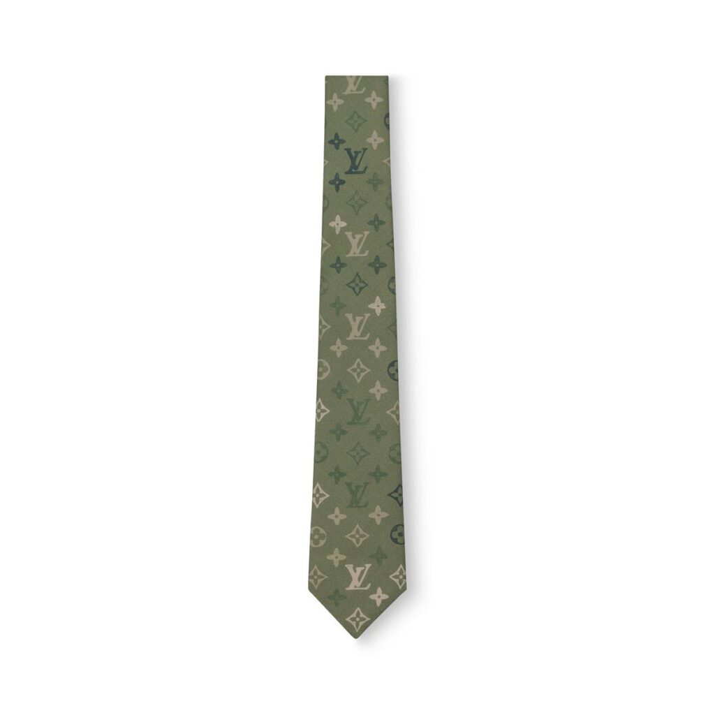 メンズ・プレタポルテやレザーグッズ・コレクションに登場したパターンを取入れた「ネクタイ・モノグラム サープラス」。ミリタリーウェアの色調から着想を得た、落ち着いた印象のアイテムです。多彩なグリーンで表現したスタンプ風のモノグラム・パターンのエンブレムが、シルク素材ならではのラグジュアリーなスタイルに存在感を添えています。