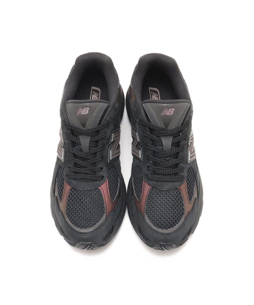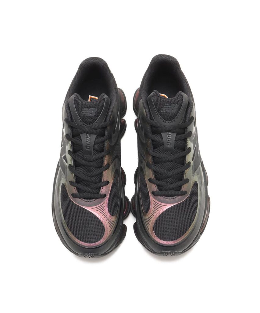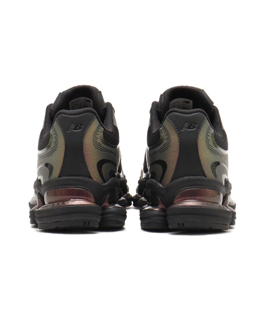 2000年代のランニングシューズを着想源に、900番台を彷彿とさせる現代的なシルエットのアッパーは、ブラックのオープンメッシュにヌバックと合成皮革を重ねたレイヤード構造を採用。