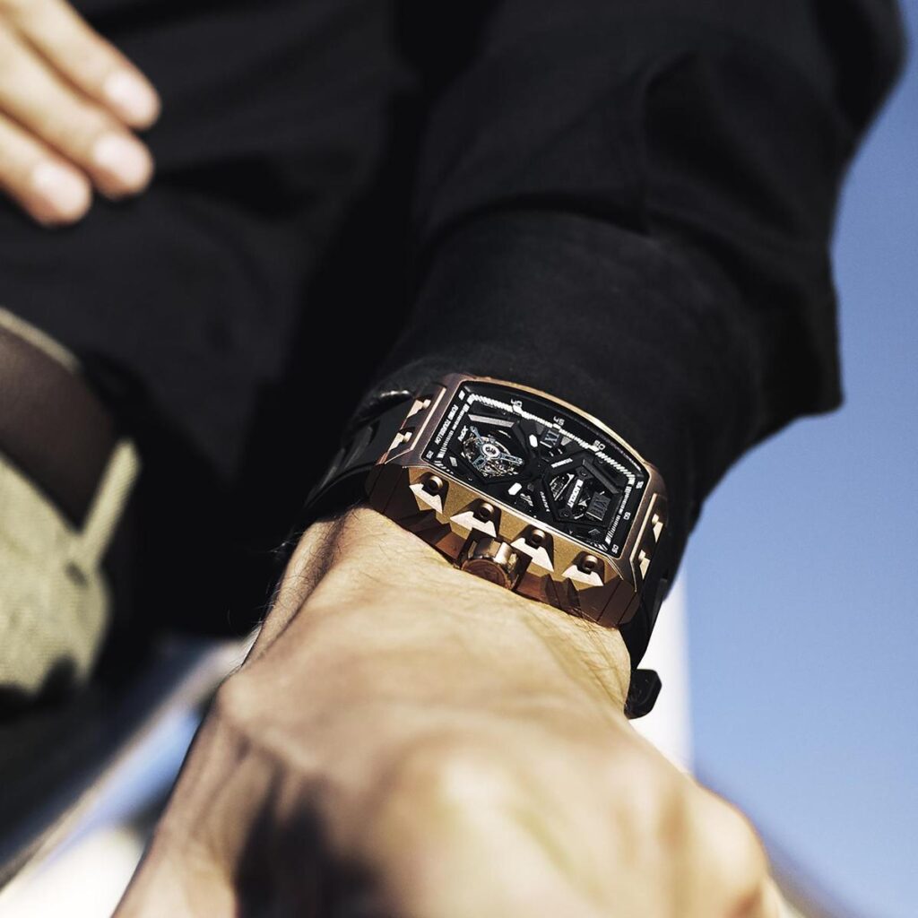 「XP1 Tourbillon Ti Rose Gold 」は、グレード5チタンの堅牢性、エッジの効いたデザインとローズゴールドの温かみのある優雅さという、これまでにない予想外の組み合わせが美しく融合し鮮烈なコントラストを生み出します。