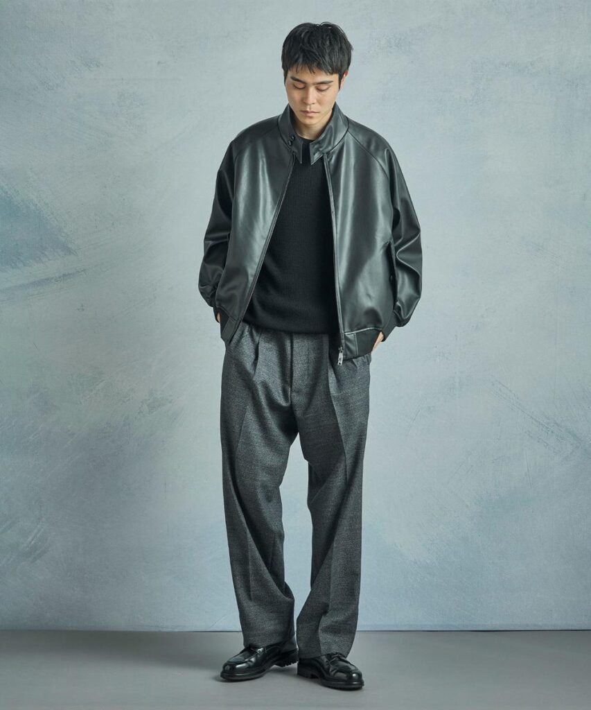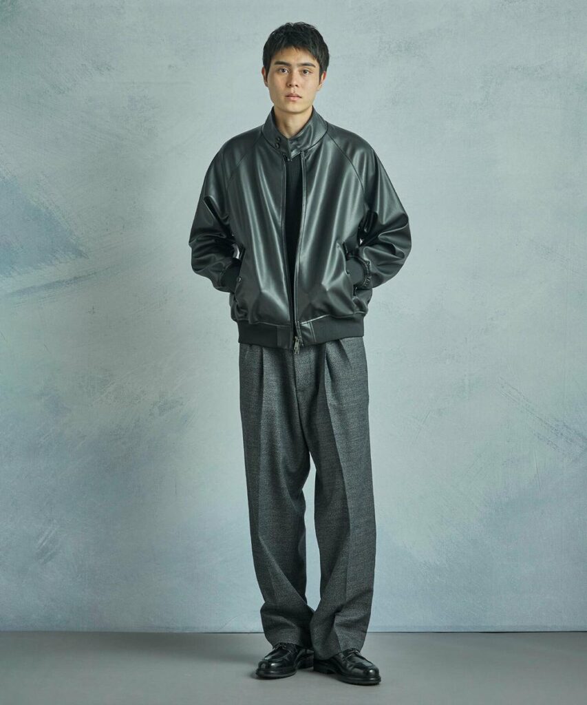 シルエットは、インナーにニットやスウェットを合わせてもバランスよく決まる現代的でゆとりのあるフィットに調整。英国的なクラシックさと、MEN’S BIGIらしい都会的なムードが共存する、50周年記念に相応しい限定ブルゾンです。