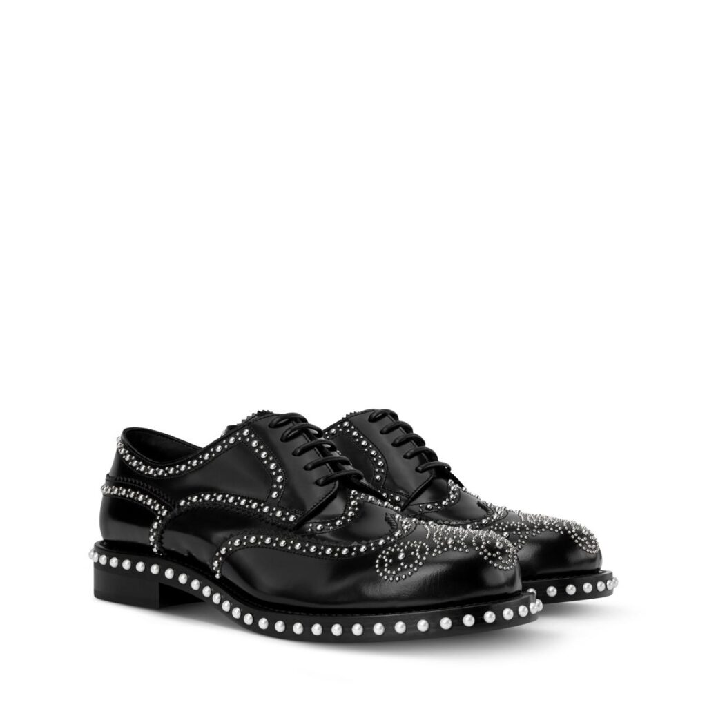 しなやかなレザーを使用し、伝統的なブローグシューズのパーフォレーションを想起させるパールとスタッズで華やかに彩られた「LVオックスフォード ダービー」。装飾的なモノグラム・フラワー パターンをトウキャップにさりげなくあしらいました。レザー&ラバーアウトソールで仕上げた、シューズ・コレクションの定番「LV オックスフォード」ラインからの1足。