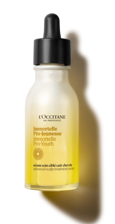 新発売となるのは、年齢とともに気になる髪のパサつき・うねり・ハリのなさなどの悩みに着目した「イモーテル プロユース アドバンストスカルプセラム」。生命力の高さから永久花と呼ばれる“イモーテル”のエッセンシャルオイルが頭皮を健やかにケア。さらに、頭皮や髪にハリを与えるペプチドコンプレックスと、頭皮にうるおいを与えるヒアルロン酸を配合。頭皮・髪の2方向からアプローチすることで、ハリ・ツヤのある、弾むような髪へ導きます。