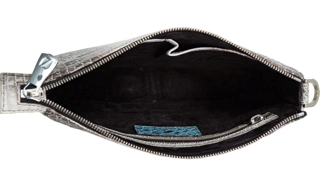 まずは、コチラの「ナイルクロコダイル ボヌールカレZIP ショルダー」をご覧ください。ハンドルとストラップを備えており、クラッチバッグ・セカンドバッグ・ショルダーバッグの3通りの使いかたができるスグレモノ。しかも、「ヒマラヤ」と呼ばれるこの色は、クロコダイルレザーの中でも特級クラスの革質でのみ可能なものなのです。