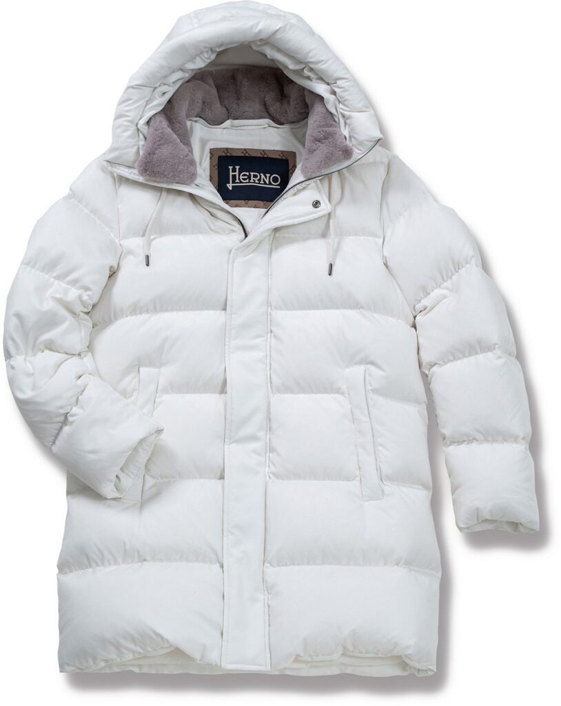 オシャレ男子の間では、真冬に白のアウターを着るのはもはや通常テク。そこで、一歩上を行くために、ダウンコートも白を選びましょう。ど~んと面積の広い白が、特有の清涼感だけでなくインパクトももたらし、冬のファッションをブラッシュアップしてくれますよ。コチラでご紹介したいのはイタリアブランド「HERNO」の1着です。