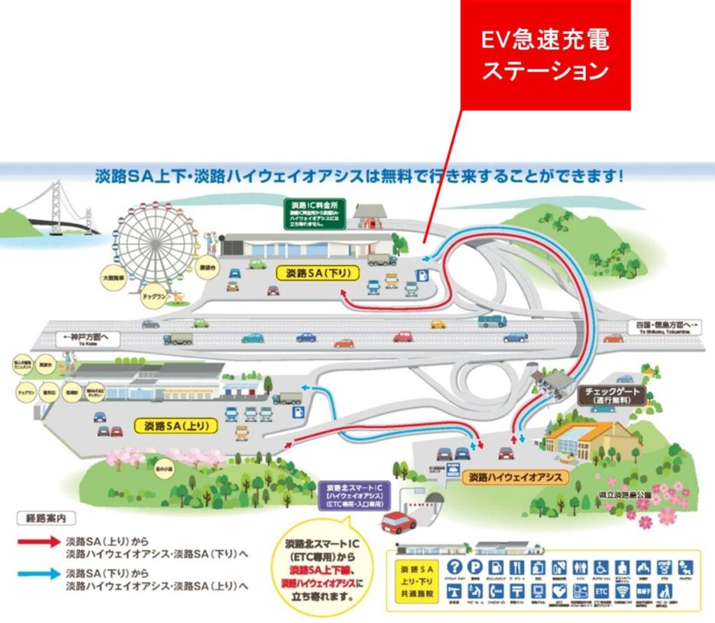 この取り組みの一環として、淡路SA(下り)において、12月19日(金)10時から充電サービス(有料)を開始することとしましたので、お知らせいたします。