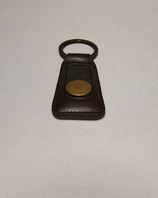 両モデルともに、Barbourのジャケットから再利用されたボタンとLoakeの生産過程で余ったレザーで作られたオリジナルキーリングが付属いたします。