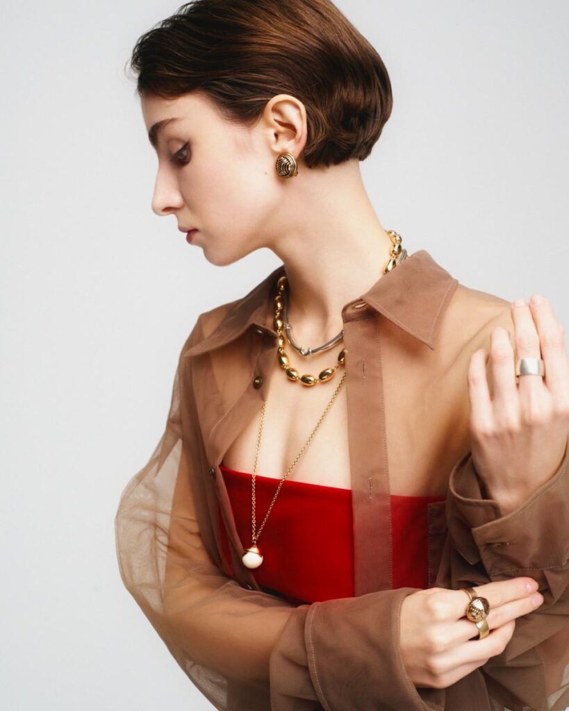 シルバーラージピアス ¥100,650 / シルバースモールペンダント ¥42,130 / ブロンズミニピアス¥29,150 / シルバーラージペンダント ¥123,420 / シルバーブローチ ¥172,320 (税込価格)
