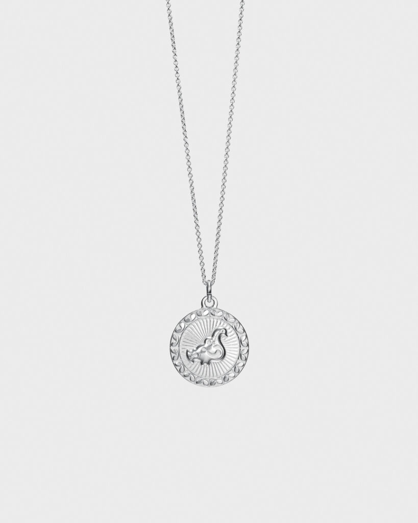 Taikalintuネックレス 「運を呼ぶ」 ¥32,670 / ブレスレットチェーン ¥29,150 / Pohjankarhuミニチャーム「知恵」 ¥11,550/ Osmansolmuミニチャーム「幸運」 ¥11,550 / Aurinkoleijoonaラージペンダント 「勇気」¥37,840 (税込価格)