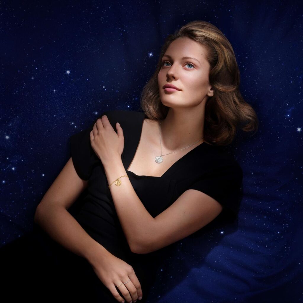 天空の世界に魅せられたヴァン クリーフ&アーペルは、星々が奏でる詩情を捉えたいと夢見てきました。1950年代以来、黄道十二宮を意味する〈ゾディアック〉にインスピレーションを得て生まれた数々の作品には、それぞれの星座がもつ象徴性が映し出されています。メゾンは今回、メダルに新たな解釈を加え、ホワイトゴールドの作品やブレスレットに仕上げた作品を通じて、この伝統を継承しました。装いの楽しみを広げるこれらの新作は、身に纏う人が紡ぐ個人的な物語によって命が吹き込まれます。